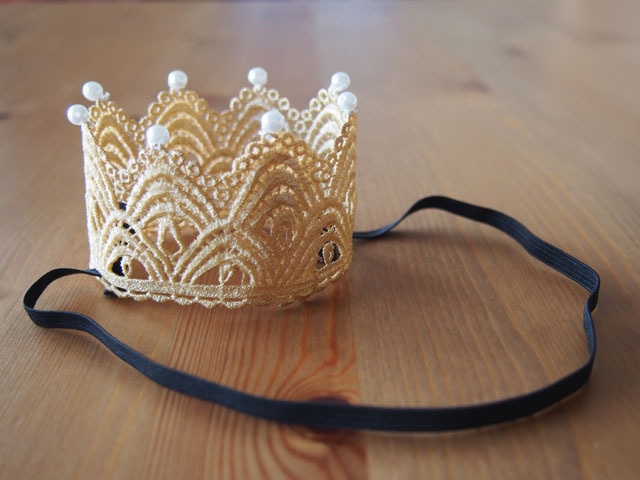 ミニサイズ☆パール付きレースクラウン ゴールド